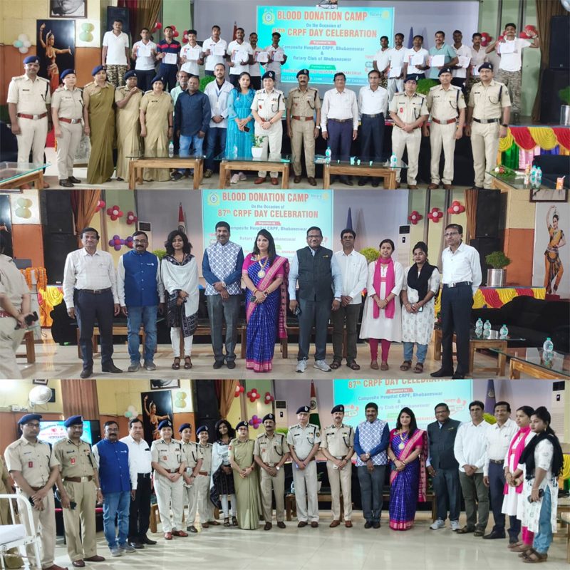 Bhubaneswar, March 10: A blood donation camp was successfully organized by the Rotary Club of Bhubaneswar on 9th March at the Central Reserve Police Force Campus on the occasion of CRPF Day.