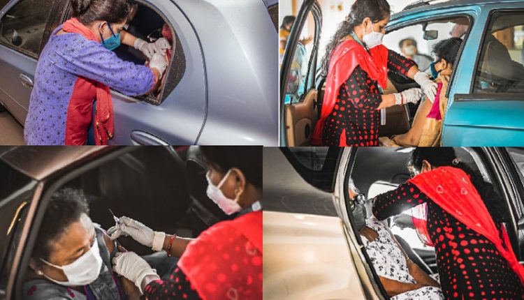 On an average, over 1000 people above the age of 45 years are taking the second dosage of vaccine everyday while seating in their vehicles.
