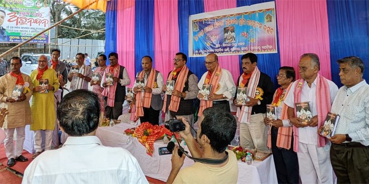 Padma Shri Pandit Dr Antarjyami Mishra launches the book written by Ranjan Kumar Panda, the Chief priest of the temple
