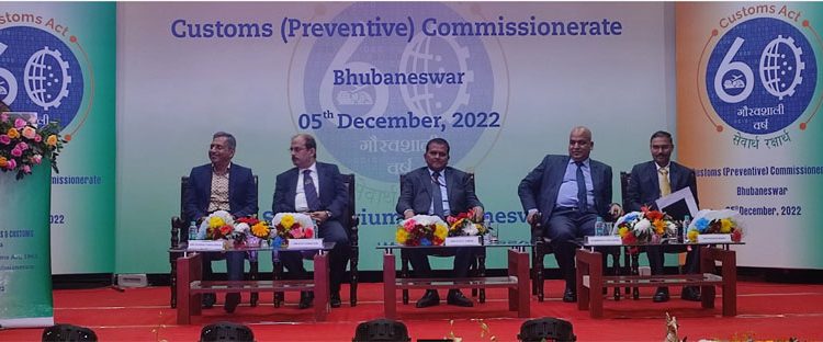 Bhubaneswar: Celebrations of 60 years of Customs Act, 1962 was organised by the Customs (Preventive) Commissionerate, Bhubaneswar in the Institute of Life Sciences Auditorium, Nalco Square, Bhubaneswar on 05th December 2022. The event was inaugurated with Lighting of Lamps followed by SARASWATI Bandana. Shri Madhab Mishra,Commissioner of Customs welcomed all the dignitaries to the stage. Shri Roop Narayan Sunker,General Manager, East Coast Railway Bhubaneswar was the Chief Guest and Shri Suvendu Kumar Swain, Chief Post Master General, Bhubaneswar along with Shri S.K. Priyadarsi, Commissioner of Police, Bhubaneswar, were the guest of honour. Shri Bijoy Kumar Kar, Chief Commissioner, GST, Central Excise &Customs, Bhubaneswar, was the Chief host and guided the entire event.