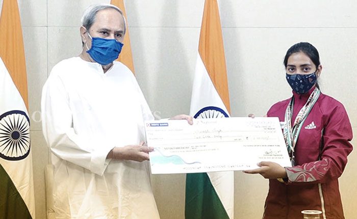Bhubaneswar(Kalinga Voice): Chief Minister Shri Naveen Patnaik today felicitated National record holder and Odisha’s Cycling sensation, Swasti Singh for her outstanding achievements in Cycling, at Naveen Niwas today.
