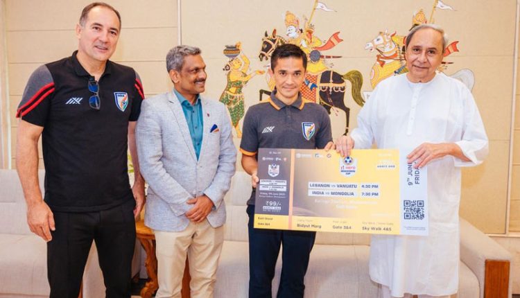 Bhubaneswar, 30 May 2023: Odisha Chief Minister Naveen Patnaik bought the first ticket for the upcoming Intercontinental Cup 2023 that will be played at Bhubaneswar from 9-18 June. Captain of the Indian Football team, Sunil Chhetri handed the first ticket for the marquee event to the Chief Minister in the presence of Dr. Shaji Prabhakaran, the General Secretary of the All-India Football Federation and Coach of the Indian Football team, Igor Stimac.