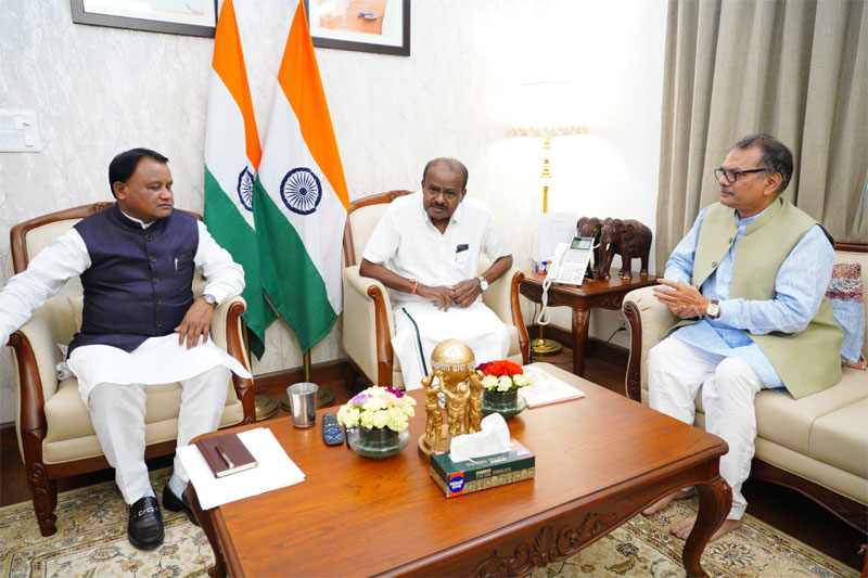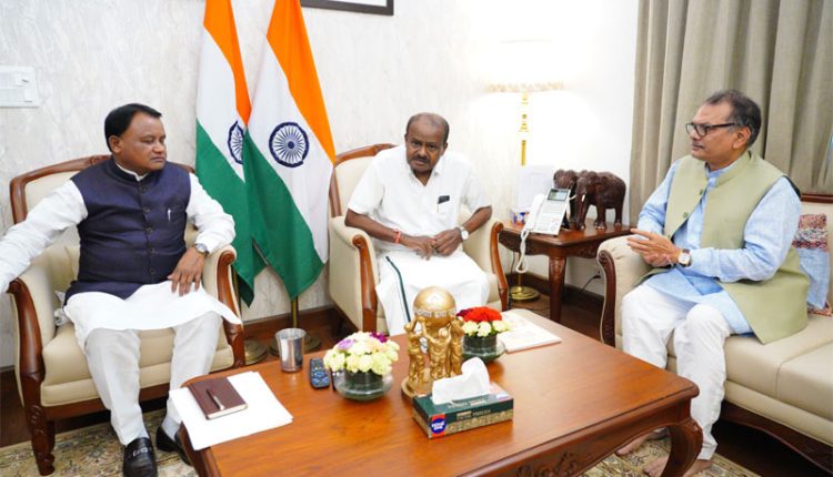 New Delhi: Hon’ble Chief Minister of Odisha Shri Mohan Charan Majhi along with Hon’ble MP Jajpur Dr. R. N. Behera met Shri H. D.Kumaraswamy, Hon’ble Union Minister of Steel &Heavy Industries at his New Delhi residence yesterday.   During the meeting various issues such as development of Steel Industries in Odisha, expansion of Rourkela Steel Plant and generation of employment were discussed at length.