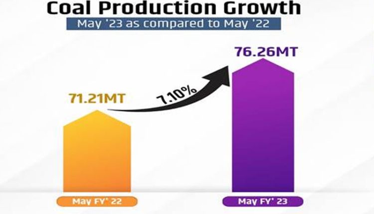 New Delhi/Kalinga Voice: The Ministry of Coal has achieved a remarkable feat with a substantial surge in overall coal production during the month of May’23, reaching 76.26 Million Tons(MT), surpassing the figures of the month May’22 of 71.21 MT, representing an increase of 7.10%. The production of Coal India Limited (CIL) has increased 59.94 MT in the month of May’23 as compared to 54.72 MT in May’22 with the growth of 9.54%. The cumulative coal production has seen quantum jump of 149.41 MT in FY’ 23 as compared to 138.41 MT in FY’22 with a growth of 7.94%.