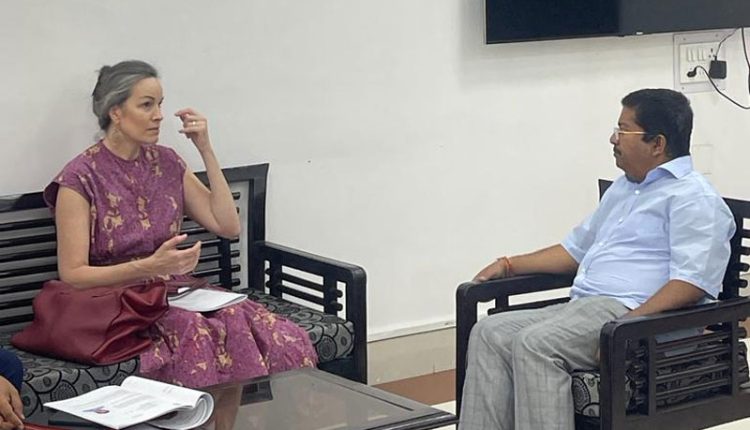 Bhubaneswar : Elisabeth Faure, Representative and Country Director of UN World Food Programme (WFP) India, called on Odisha Food Supply & Consumer Welfare , Cooperation Minister Atanu sabyasachi Nayak here today in Lokseva Bhawan. Both of them had a discussion on working of Food Secrutity Act and fortification of rice .