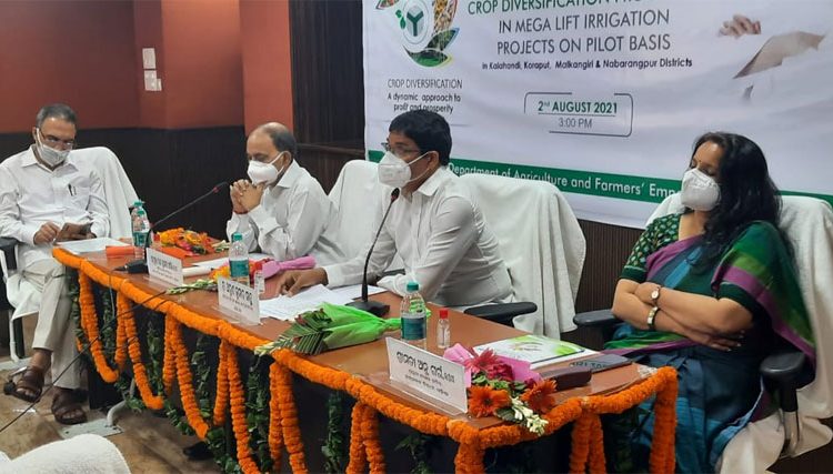 Bhubaneswar (Kalinga Voice) :“Crop Diversification Programme in Mega Lift Irrigation Projects” is going to be implemented on pilot basis from Kharif 2021-22 through the Department of Agriculture & Farmers Empowerment, Government of Odisha under the dynamic leadership and guidance of our Hon’ble Chief Minister, Sri Naveen Pattanaik.The primary objective of this programme is to diversify from traditional cultivation of paddy to other non-paddy crops such as pulses, oil seeds, fibers and horticultural crops in upland/medium land duringKharif season and improving soil health through promotion of crops with greater biomass and less chemical input requirement.Besides, the programme will involve integration with livestock and fisheries,cluster based promotion of post-harvest operation, primary processing, value addition and marketing through community based organisations (CBOs) like FPOs/WSHGs/PaniPanchayats and agri-entrepreneurfor enhancing income of farmers, creating awareness, capacity building and community mobilization of farmers on sustainability of cropping pattern and diet diversification, inclusion of non-paddy grains in different government schemes such as ICDS, MDM, PDS and SC / ST Welfare hostels.