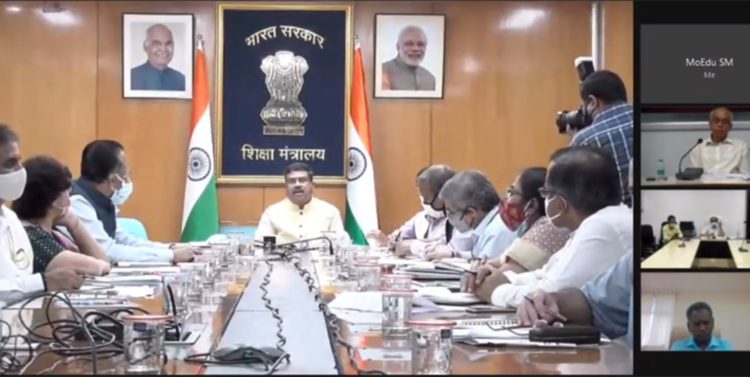 Union Education and Skill Development Minister Shri Dharmendra Pradhan today held a meeting with Vice Chancellors of Central Universities through video conferencing. Minister of State for Education Shri Subhash Sarkar, Secretary, Higher Education, ShriAmitKhare, Chairman UGC, Prof D P Singh and senior officials of the Ministry and UGC attended the meeting.