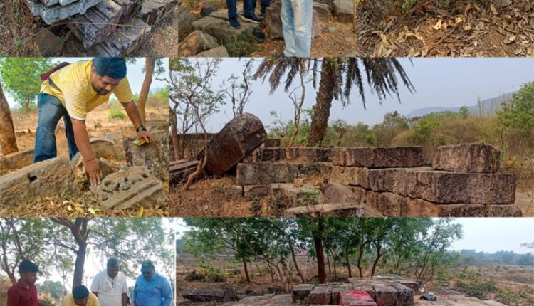 Cuttack (Kalinga Voice) : A team from the Indian National Trust For Art & Cultural Heritage (INTACH) has discovered the base of an ancient temple and other archaeological remains at Purushottampur Sasana village in the Badachana block of the Jajpur district. The temple ruins, near the Dhanamandal Railway Station, was first noticed by Nrupati Nihar Siala, a local heritage enthusiast, who informed the INTACH Cuttack Chapter. The ruins lay scattered in an area of four acres at the base of a small hillock, a little away from the railway siding.