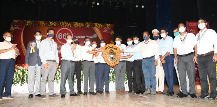 Bhubaneswar (Kalinga Voice) : East Coast Railway has observed the 66th Annual Award ceremony at Railway Auditorium, Bhubaneswar, today, adhering to Covid protocols. Shri Vidya Bhushan, General Manager, East Coast Railway was the Chief Guest in the occasion. Shri Sudhir Kumar, Addl. General Manager graced the occasion.