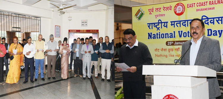 Bhubaneswar : East Coast Railway celebrated National Voters’ Day (NVD) at its headquarters at Rail Sadan, Bhubaneswar. Employees and officials of East Coast Railway led by General Manager Shri Manoj Sharma took oath to mark the foundation day of the Election Commission of India, i.e. 25th January 1950 and to create electoral awareness amongst citizens and encourage them to participate in the electoral process.