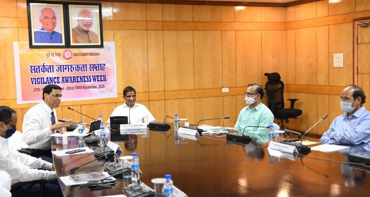 Bhubaneswar(Kalinga Voice) :  A seminar on “Satark Bharat, Samriddh Bharat” was organized at the East Coast Railway Headquarters in which General Manager Sri Vidya Bhushan presided over the function. He addressed the gathering and advised officers and staffs to following integrity in our working environment.