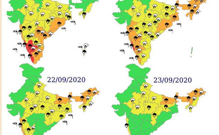 (i) Fairly widespread to widespread rainfall with isolated heavy to very heavy falls very likely over Kerala, Karnataka and Konkan & Goa during 19th-22nd September. Isolated extremely heavy falls also very likely over Coastal Karnataka during 19th-21st; over north Kerala &Ghat sections of South Interior Karnataka on 19th & 20th; oversouth Konkan & Goa on 21st & 22nd September, 2020.