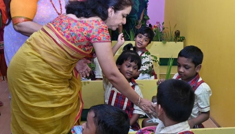 Bhubaneswar (Kalinga Voice) : Members of East Coast Railway Womens’ Welfare Organisation (ECoRWWO) headed by its President Smt. Divya Sharma participated in an environmental awareness programme for children . To mark this occasion, Smt Sharma and other members planted saplings at Rail Vihar and encouraged kids to participate & involve their parents for safeguarding the environment. Children of Phulwari School run by ECoRWWO participated in the Plantation programme. Medicinal Plants with cotton bags were also distributed to the children. Apart from this, Smt Sharma also distributed sanitary Napkins to the contractual women workers as a part of Women Health and Hygiene initiative named “Dastak”.