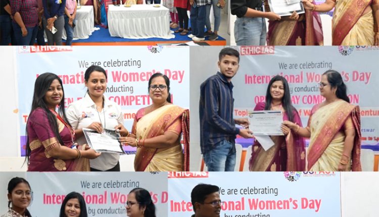 Bhubaneswar-(Kalinga Voice): Ethic IAS Celebrated International Women’s Day. On this occasion an essay competition was organised. The essay topic was “Importance of women in 21 century”. Managing Director, ETHIC’IAS Swarupa Rani graced the occasion as the chief guest.