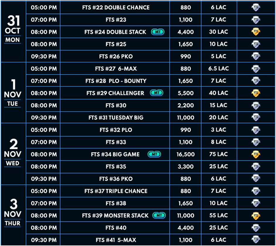 Below is the schedule for Final Table Series: –