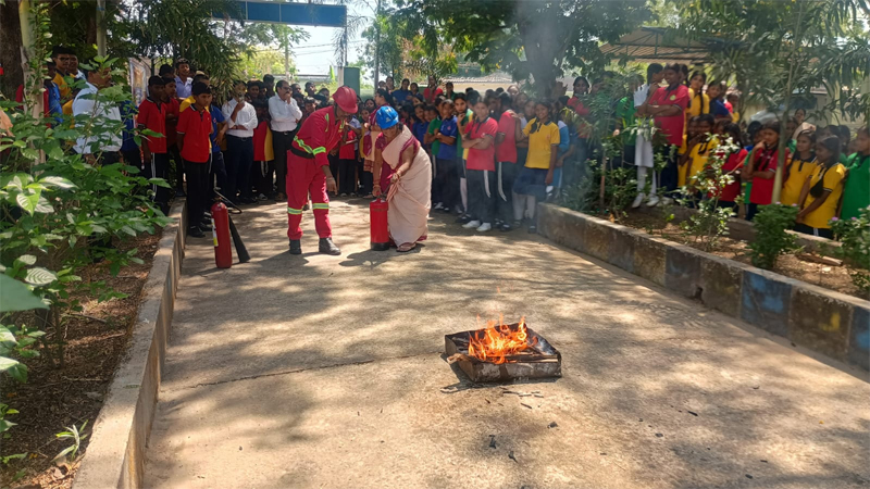 Further, fire safety personnel Bulu Pera and Shiv Kumar Mallik demonstrated practical fire extinguishing techniques through a mock drill, which generated keen interest among the students.
