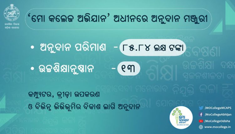 Bhubaneswar(Kalinga Voice) : The Mo College Abhijan, a flagship initiative of the Govt of Odisha under the vision of Hon’ble Chief Minister Shri Naveen Patnaik, providing a thriving platform for the overall development of Universities and Colleges in the state, has released a total project cost amounting to Rs 85,84,705 for 13 Colleges in the state for undertaking a variety of developmental projects.