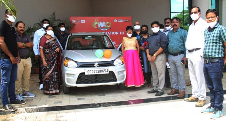 Ms. Urbashi Das, who belongs to Aul area of Kendrapara district, was presented with the keys of the vehicle at a simple function held at the SOA head office here.