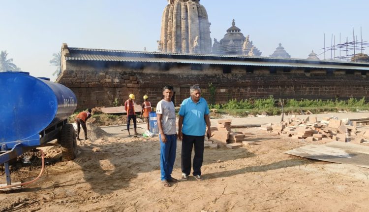 Bhubaneswar 12th Nov :   The heritage well near the 13th Century  Protected Ananta Vasudeva temple has been filled up and concrete platforms are being made after landfilling the area. The plot adjoining the Ananta Vasudeva temple was earmarked for shifting the kitchen complex, which at present is adjoining the temple.  The well water was used in the cooking of the Prasad prior to the days of piped water supply. Both the ASI and the NMA have been repeatedly demanding the shifting of the Roshaghara outside the prohibited zone.
