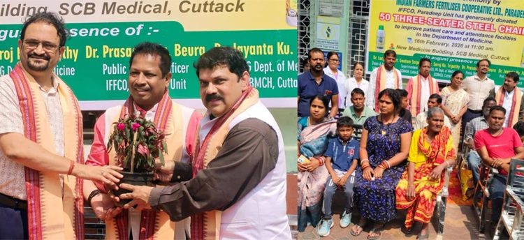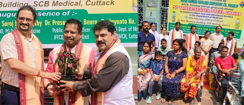 Cuttack(Kalinga Voice) : IFFCO Paradeep Unit donated 50 three-seater steel chairs to SCB Medical College and Hospital, Cuttack. The chairs will enhance patient and medicine department facilities in the New Medicine Building. SCB Medical College ranks among the country’s top government hospitals, drawing patients nationwide. Yet, it faces chronic challenges with overcrowded spaces and inadequate amenities while many patients sit or sleep on the ground, with some unable to find any space at all. Dr. Jayant Kumar Panda reached out to IFFCO Managing Director Shri KJ Patel and Paradeep Unit Head Shri PK Mohapatra, requesting assistance.