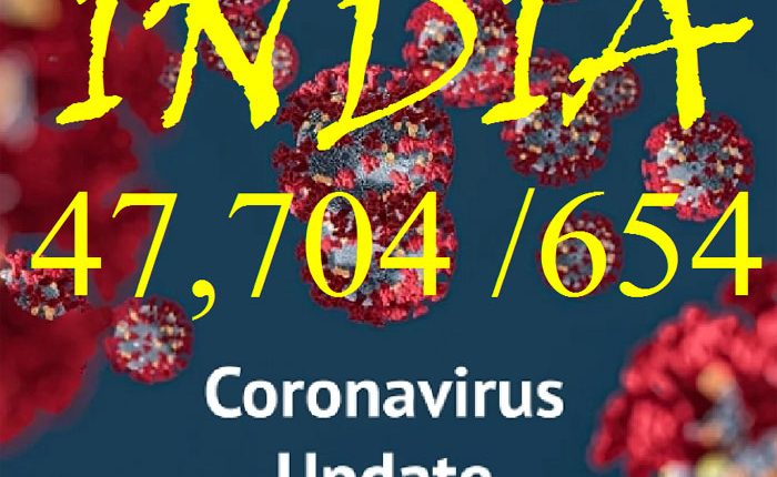 New Delhi(Kalinga Voice) : Single-day spike of 47,704 positive cases detected and 654 deaths reported in India in the last 24 hours. Total COVID19 positive cases now stand at 14,83,157 including 4,96,988 active cases. 9,52,744 persons are recovered and discharged till date . The recovery rate among #COVID19 patients has increased to 64.23%. The recoveries/deaths ratio is 96.6%:3.4% now.