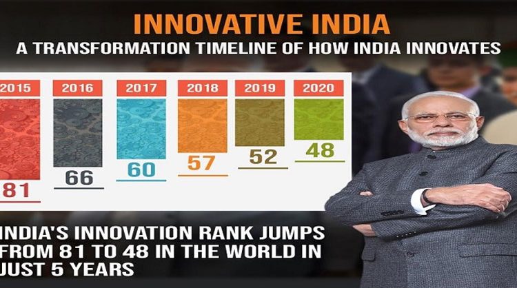 In a tweet CEO, NITI Ayoga Amitabh Kant, says “From 81st rank in 2015 to 48th rank in 2020 India makes a huge jump to be in the league of innovative nations.WIPO terms India as a leading innovation achiever in the central & southern Asian region,as it has shown consistent improvement in the innovation ranking for last 5 years” .