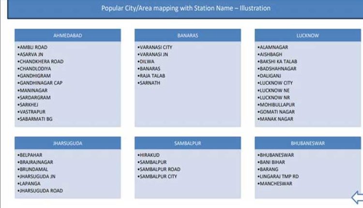 To accomplish the objective,application changes in technology have been done and 175 popular city/area have been linked with 725 stations.These changes have been incorporated in the journey planner station search of e-ticket booking website.The functionality shall be displayed on the journey planner and electronic reservation slip of the ticket.