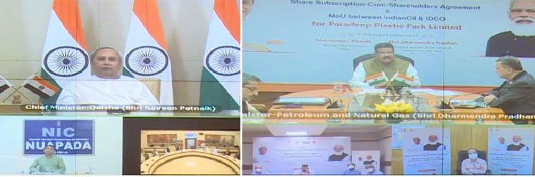 To this effect, a shareholders agreement between IDCO and IOCL was signed today for Paradeep Plastic Park along with an MoU today on virtual platform in the presence of Chief Minister Shri Naveen Patnaik, and Union Minister of Steel, Petroleum and Natural Gas Shri Dharmendra Pradhan. Shri Dibya Shankar Mishra, Minister of State for Industries, MSME, Energy & Home was also present.