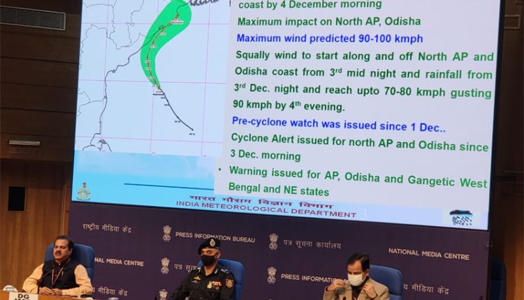 New Delhi (Kalinga Voice) ; The Cyclone Jawad, which is headed to India’s eastern coast on Saturday and Sunday, will witness wind speeds of 90-100 kmph with 90 kmph when it touches the coast near north Andhra Pradesh-Odisha on Sunday. Jawad’ is a name given by Saudi Arabia and means generous, magnanimous.