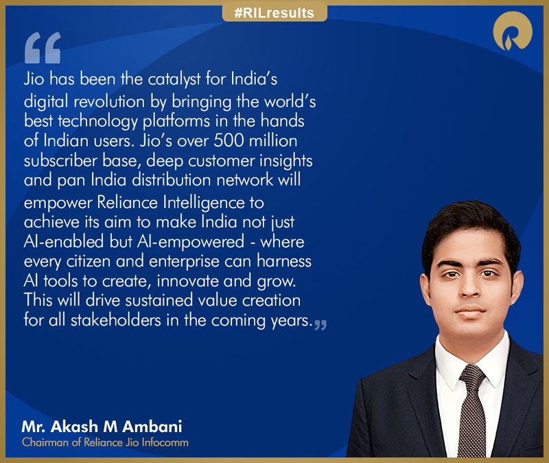 Mr. Akash M Ambani, Chairman of Reliance Jio Infocomm, said, “Jio has been the catalyst for India’s digital revolution by bringing the world’s best technology platforms in the hands of Indian users. Jio’s over 500 million subscriber base, deep customer insights and pan India distribution network will empower Reliance Intelligence to achieve its aim to make India not just AI-enabled but AI-empowered – where every citizen and enterprise can harness AI tools to create, innovate and grow. This will drive sustained value creation for all stakeholders in the coming years.”