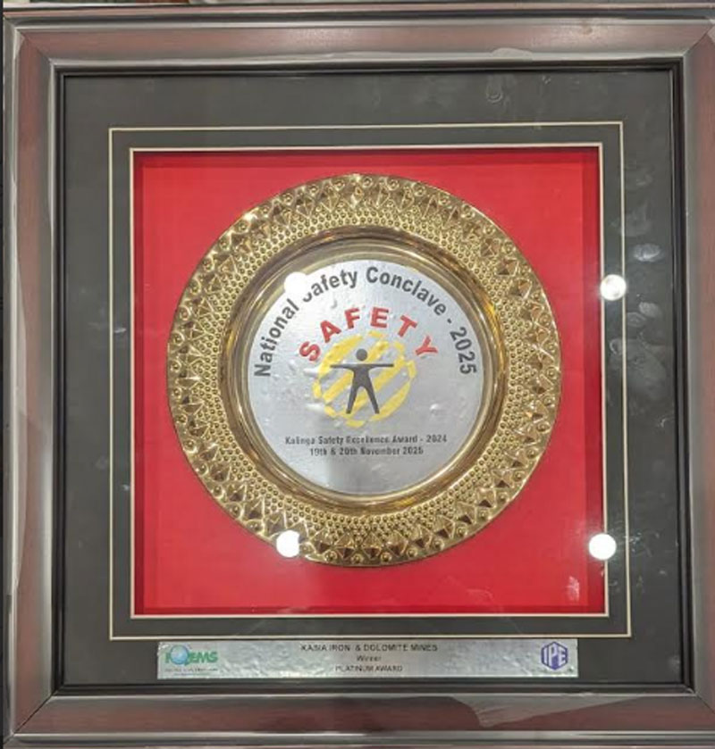 Joda/Barbil: Jindal Steel’s Kasia Mines has been honoured with the prestigious Kalinga Excellence Safety Award in the Platinum Category for its outstanding performance and significant contribution to safety practices in 2024. The award was presented during the 16th National Safety Conclave–2025, organised by IQEMS.