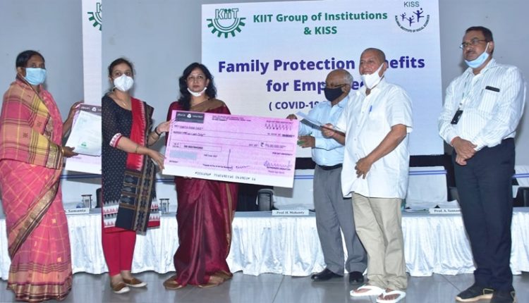 Bhubaneswar, (Kalinga Voice) : KIIT and KISS take various welfare initiatives for its employees from time to time as per advice of Dr. Achyuta Samanta, Founder, KIIT & KISS. The entire world has been severely affected by the deadly Covid-19 pandemic. India and Odisha have also not escaped from the impact of this deadly virus. Lakhs of people affected by Covid have lost their lives all over the world. In view of this pandemic, KIIT Group of Institutions had declared a special assistance package for the families of Covid-deceased employees of KIIT Group of Institutions in 2020. At that time, Dr. Samanta had announced that the family of each Covid-deceased staff will get financial aid of Rs. 5 lakh along with a job for one of the family members in KIIT and KISS as per his/her educational qualification. Besides that their children will get free education in KIIT-DU according to their eligibility. As per this announcement, Dr. Samanta handed over cheques of Rs. 5 lakh and appointment letters to the families of Covid-deceased employees at a special programme on Monday. Among others, Prof. Hrusikesh Mohanty, Vice chancellor, KIIT Deemed to be University, Prof. Sasmita Samanta, Pro VC, Prof. Jnyana ranjan Mohantay, Registrar and other senior officials of KIIT Group of Institution were also present