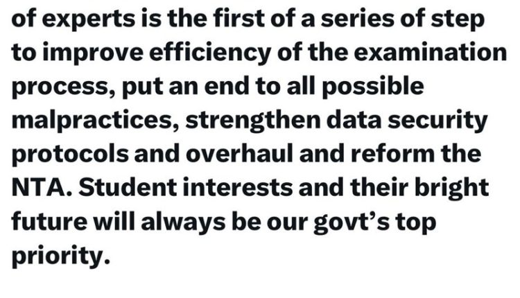 Committee to make recommendations on Reform in mechanism of examination process, improvement in Data Security protocols and structure and functioning of NTA