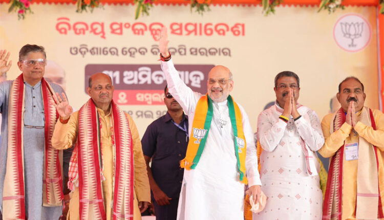 Bhubaneswar ; Union Home Minister & Minister of Cooperation and Senior BJP leader Shri Amit Shah addressed public meetings in Sambalpur, Keonjhar, Dhenkanal & Puri in Odisha on Tuesday. He criticized Naveen Babu’s government for corruption and asked the public to give ensure ‘a double-engine government in the state. During the rally, Odisha BJP President Shri Manmohan Samal, Union Minister and Sambalpur Lok Sabha candidate Shri Dharmendra Pradhan, Bhubaneswar Lok Sabha candidate Smt Aparajita Sarangi, Baleshwar Lok Sabha candidate Shri Pratap Sarangi, Kendrapara Lok Sabha candidate Shri Baijayant Panda, Keonjhar Lok Sabha candidate Shri Shri Ananta Nayak and Union Minister Shri Faggan Singh Kulaste, Dhenkanal Lok Sabha candidate Shri Rudra Narayan Pany, Puri Lok Sabha candidate Dr Sambit Patra among other senior leaders were present.