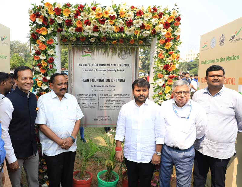 Shri Jindal, along with Mayor of Cuttack Municipal Corporation Shri Subhash Singh, MLA Choudwar-Cuttack Shri Souvic Biswal, CMC Commissioner Shri Nikhil Pavan Kalyan (IAS), Vice Chancellor of Ravenshaw University Dr. Sanjay Kumar Nayak and Registrar of Ravenshaw University Shri KC Malik (OAS), hoisted mammoth 36 ft x 24 ft Tiranga on a 108 ft high monumental flagpole installed by Flag Foundation of India (FFoI) at the historic Ravenshaw University campus in Cuttack.