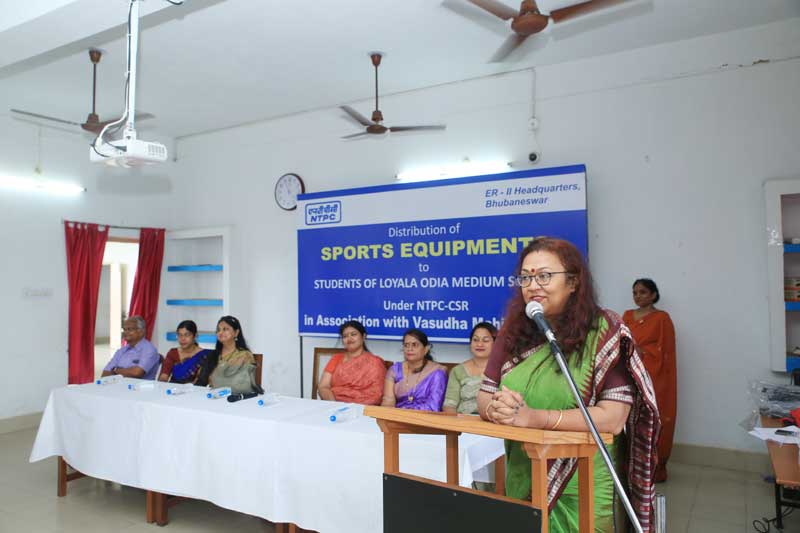 Mrs Mahua Majumder President Vasuda Mahila Mandal appreciated the services of the school in promoting academics and sporting activities. She also stated that it was the privilege of NTPC to provide sports equipment for the students of Loyola Odiya Medium School to develop their sporting talents.