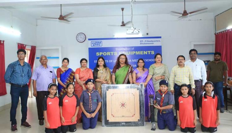 Bhubaneswar(Kalinga Voice) : Mrs Mahua Majumder President Vasuda Mahila Mandal NTPC -ER-II handed over Sports equipment for the benefit of students of Loyola Odiya Medium School This includes playing kits , hockey Sticks, Footballs ,Volley balls, Basket balls, Carrom boards etc.