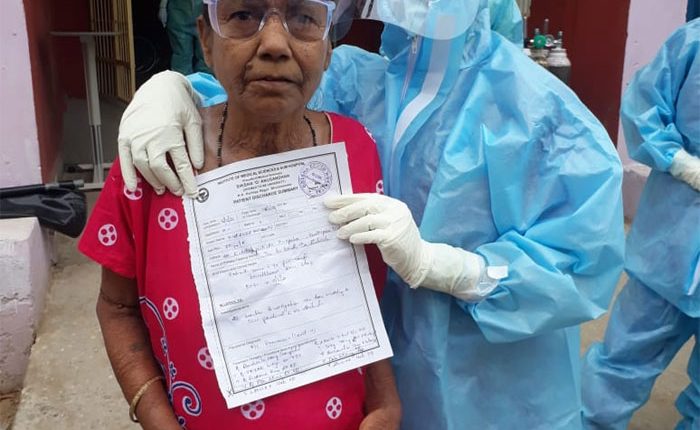 Bhubaneswar/ Kalinga Voice : Afflicted by Covid-19, an 80-year-old woman in Odisha’s Kendrapara district has conquered the virus showing incredible mental strength, courage and fortitude.