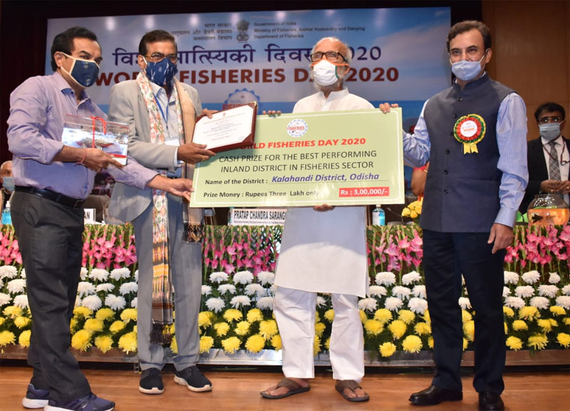 Odisha State has achieved another milestone when the state received two prestigious national level fisheries awards on the occasion of ‘World Fisheries Day’ in a ceremony organized by the Ministry of Fisheries, Animal Husbandry & Dairying, Government of India, New Delhi. Odisha State received the “Best Marine State” award and Kalahandi district received the “Best District” Award” in Inland fisheries sector.