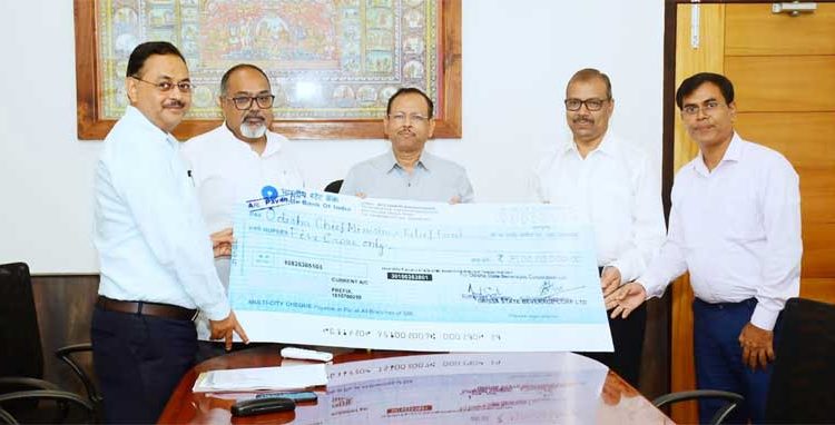 Bhubaneswar: Odisha State Beverages Corporation Limited (OSBCL) today donated Rs 5 Crore to the Chief Minister’s Relief Fund. Chief Secretary Shri Pradeep Kumar Jena received this amount in form of cheque towards CMRF, in presence of ACS, Tourism & GAPG Department Shri Surendra Kumar from Shri Sushil Kumar Lohani, Principal Secretary, PR&DW Department and Chairman, OSBCL at Lokseva Bhawan. Managing Director of OSBCL Shri Prasanna Kumar Sarangi and CJM Shri Manas Ranjan Swain were also present for the purpose.