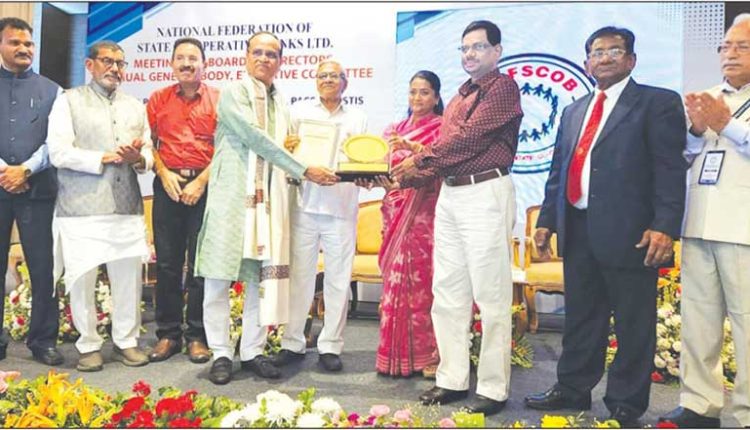 Bhubaneswar : Odisha State Cooperative Bank has got the National Award. Odisha State Cooperative Bank has bagged the third prize for the best service and performance among the cooperative banks acoss the country. Odisha has received this award for 2020-21 and 2021-22 annual session held in Rajasthan by the National Federation of State Cooperative Bank Ltd. (NAFSCOB). Odisha State Cooperative Bank President T. Prasad Rao Dora and Director Ambika Prasad Das received the award from the guests at the function.
