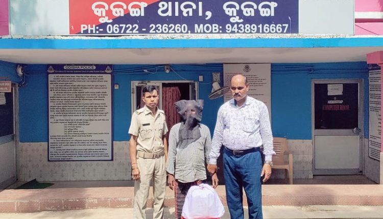 Kujanga/Paradeep : One Ganja peddler of Hasina village has been arrested by Kujanga police . A case has been registered (Kujang PS Case number 390/24) and the accused is forwarder to Court. 3.2 kg of Ganja has been seized from him exclusive possession.