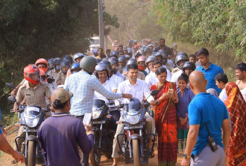 All along the route large number of people gathered and welcomed Sh Kartik Pandian. They appreciated the pro-people approach and traveling for a long distance by bike and checking the ground situation personally. He participated in public meetings at Akhuapada Field and IGM College Field in Dhamnagar.