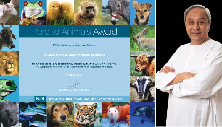 The Chief Minister of Odisha Navin Pattanaik has been awarded by People for Ethical Treatment of Animals (PETA), India Hero to Animals Award for his compassionate act towards animals during COVID lock down and shutdown period.
