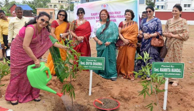 Bhubaneswar : Members of East Coast Railway Womens’ Welfare Organisation (ECoRWWO) headed by its President Smt. Divya Sharma planting saplings in the Tree Plantation Drive at Officers Rest House at Puri. Smt. Manmita Mandal, Secretary, ECoRWWO coordinated the programme.