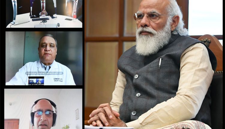 The Prime Minister on Monday had virtual meetings with 3 teams working on developing & manufacturing vaccine for COVID-19. These teams were from Gennova Biopharmaceuticals Ltd Pune, Biological E Ltd Hyderabad and Dr. Reddys Laboratories Ltd Hyderabad.