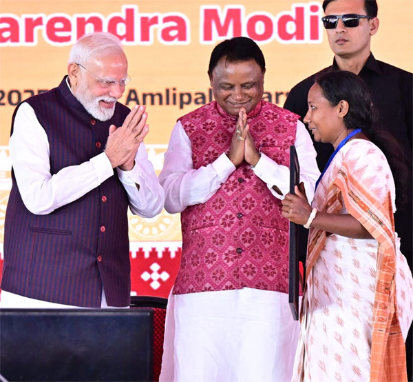 Jharsuguda (Kalinga Voice) : Prime Minister Shri Narendra Modi inaugurated and laid the foundation stone of development works worth over Rs 60,000 crore in Jharsuguda, Odisha today. Addressing the gathering, the Prime Minister offered his respectful greetings to all the distinguished dignitaries present at the event. Highlighting that the festival of Navratri is currently being celebrated, Shri Modi expressed that during these auspicious days, he was fortunate to visit the sacred land of Maa Samalei and Maa Ramachandi and meet the people gathered there. He noted the presence of a large number of mothers and sisters at the event, stating that their blessings are the true source of strength, offering his salutations to the people.