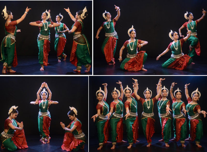 Srjan concluded with an Abhinaya, Shri Ramachandra Krupalu Bhajamana, in Raga Malika and Jati and Adi Tala, set to the music composition of Pradip Kumar Das. In praise of Lord Rama, this song, composed by Sant Tulsidas, invoked the blessings of the Lord and prayed for the purity of devotion as experienced by the great saints in their worship of the divine. The dramatic element was extended, by depicting, in Sanchari bhava the episodes of the Sita Swayamvar, and the conflict between Rama and Ravana. The synopses for the presentations were written by Aditya Mahapatra.