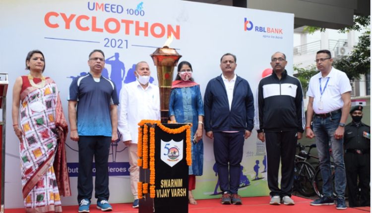 The Swarnim Vijay Mashaal was brought to the RBL Bank organized cyclothonby the Indian Army from their base in Bhubaneswar. The Mashaal symbolizes India’s victory in the 1971 War. It was lit by the honorable Prime Minister on 16th December 2020 andis on course to various parts of the country.Further expedition will start after paying tribute to the flame. On this occasion,all the participants remembered and paid respect to the war heroes of 1971.