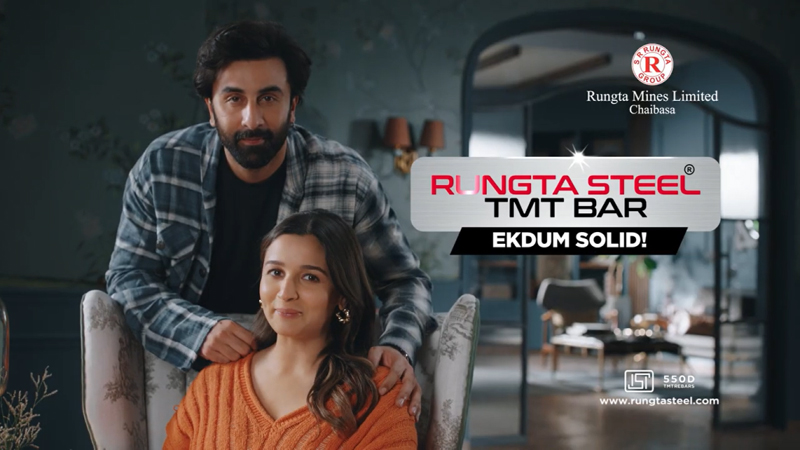 Starring actors Alia Bhatt and Ranbir Kapoor, the actors are seen in an exchange where Ranbir is seen discussing the standout features of what Alia assumes one to be about their relationship but turns out it was Rungta Steel TMT Bar that Ranbir talks about- one that is long lasting, strong, shock-absorbent and stays by your side. The TVC ends with the tagline ‘Ekdum Solid’ indicating the presence of Rungta Steel TMT Bars.